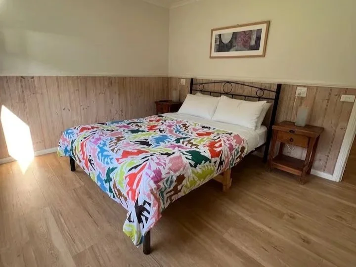 The property has seven standalone farmhouses, some of which have three bedrooms and two bathrooms, while others have two bedrooms and a shared bathroom. The 3-bedroom farmhouse can accommodate up to nine people, the 2-bedroom farmhouse can sleep up to six people, and the 2-bedroom Shearer's Retreat can house up to four people. We also offer a self-contained studio cottage that can accommodate up to 2 people.